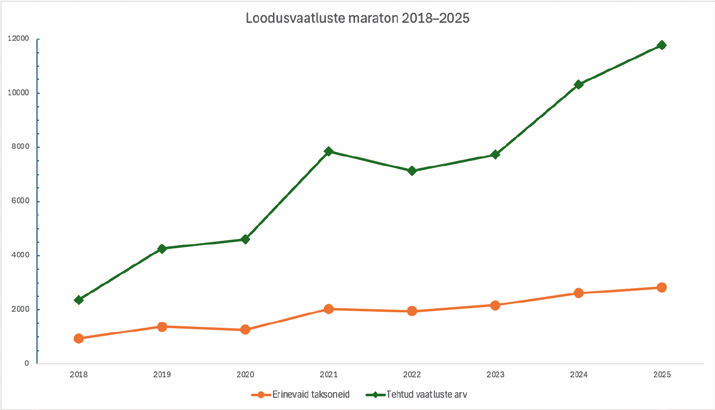 Tänu loodusvaatluste maratonile on kogunenud üha enam andmeid Eesti eluslooduse kohta, sealhulgas eri liikide kohta Allikas: PlutoF, 2026