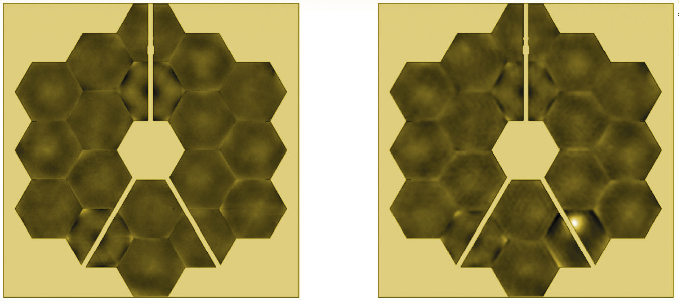 Võimalikke kokkupõrkeid mikrometeoroididega nähti ette juba enne JWST ülessaatmist. Keskmiselt iga paari nädala tagant on fikseeritud mõne mikrometeoroidi tabamus teleskoobi peegli pihta. Üldiselt ei ole need vaatlustulemusi eriti mõjutanud. Koostatud on mõni arvutiprogramm, mis püüab nende löökide mõjusid vähendada. Juhul kui peegli pihta peaks tulema tugevam löök, ei ole sellega kaasnevat kahjustust võimalik parandada. Nii juhtus juba enne seda, kui teleskoop oli jõudnud alustada vaatlusi. Nimelt tabas 2022. aasta 23.–25. mail ühte peapeegli segmenti mikrometeoroid, mis jättis sinna märgatava jälje. Teleskoobi üldist tööd see siiski oluliselt ei kahjustanud. Hubble’i teleskoobi peegel paikneb toru sees ja on mikrometeoroidide löökide eest üsna hästi kaitstud, kuid JWST peegel on lahtine ja kaitsetu.