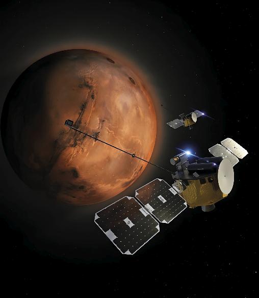 Kunstniku kujutlus ümber Marsi tiirlevatest kosmosesondidest ESCAPADE. ROCKET LAB US / UC BERKELEY