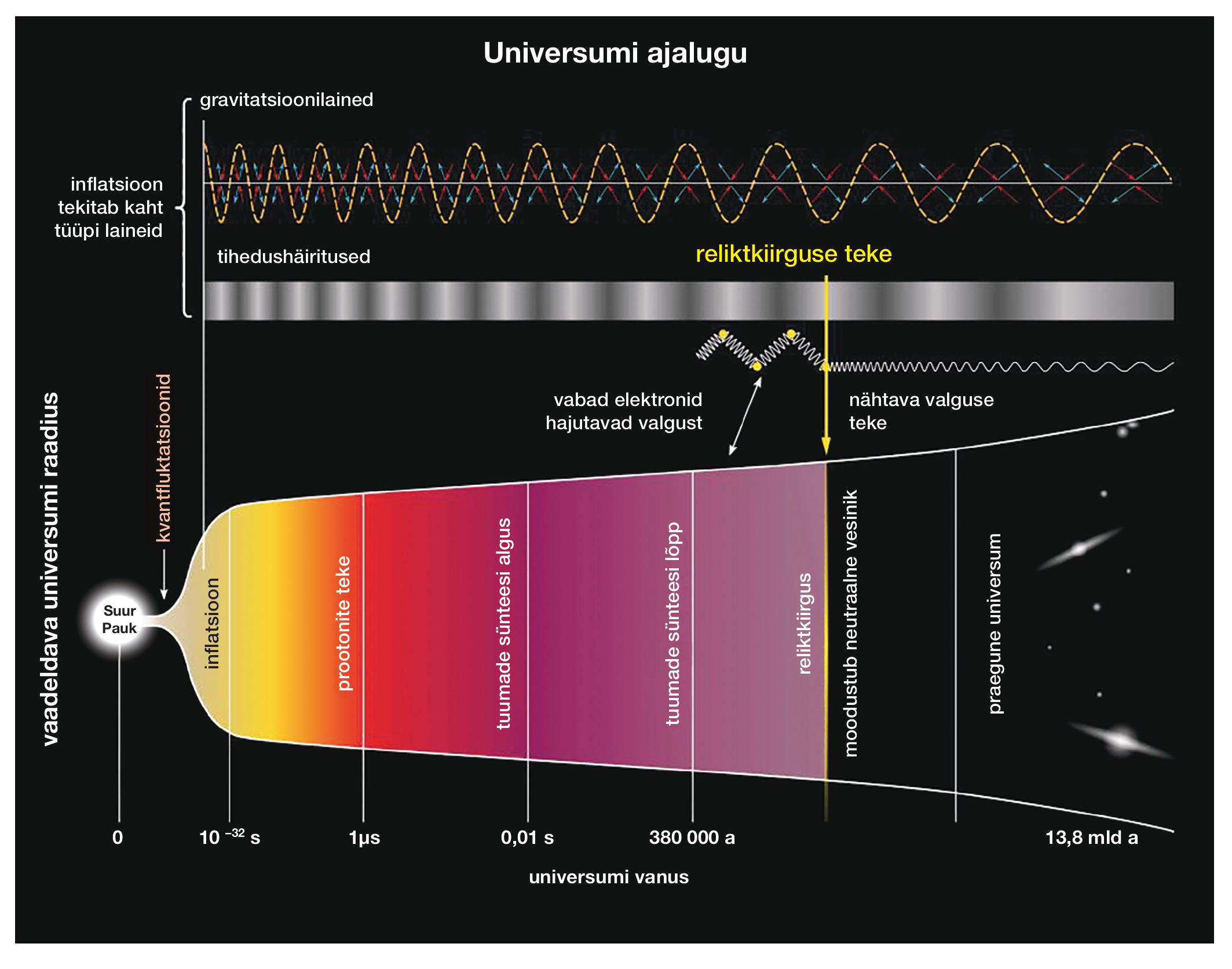 Võttes kokku: kosmilise inflatsiooni teooria järgi ei näe me reliktkiirguses ainult 380 000 aasta vanust universumit, vaid ka ülesvõtet ülinoore universumi mikroskoopilistest kvanthäiritustest. Tänapäeva fundamentaalfüüsika suur proovikivi on kosmilise inflatsiooni katseline kinnitamine või ümberlükkamine. See aitaks liikuda lähemale kvantgravitatsiooni teooria sõnastamisele ja kinnitaks kvantfüüsika vankumatut rolli kõigis mastaapides, mikroskoopiliste osakeste maailmast kuni universumi suuremastaabilise struktuurini.