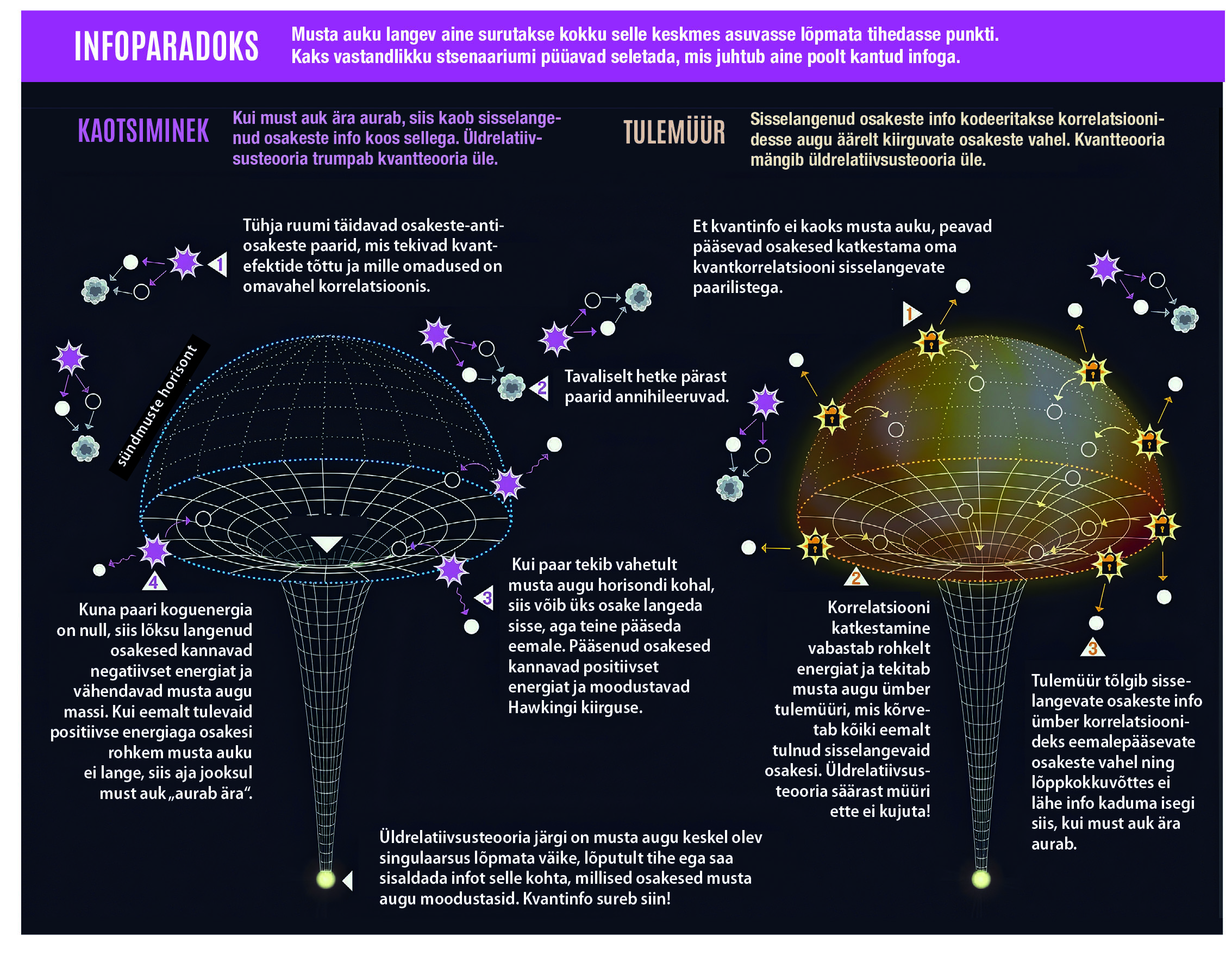 Ruumi süvastruktuuri ja universumi kui tervikuga võrreldes tunduvad mustad augud üsna käegakatsutavad objektid. Matemaatiliselt on nende kirjeldus üldrelatiivsusteoorias väga lihtne, sest neid iseloomustab ainult mass, pöördimpulss ja summaarne laeng. Auku moodustanud osakeste komplekt võib olla väga erinev, aga väljastpoolt vaadates loevad vaid need kolm suurust. Kvantmehaanika teoreemid ei luba osakeste detailsel infol kaduma minna, see jääb lihtsalt musta augu sisse. Ent piltlikult näikse kvantmehaanika sellega iseendale auku kaevavat.