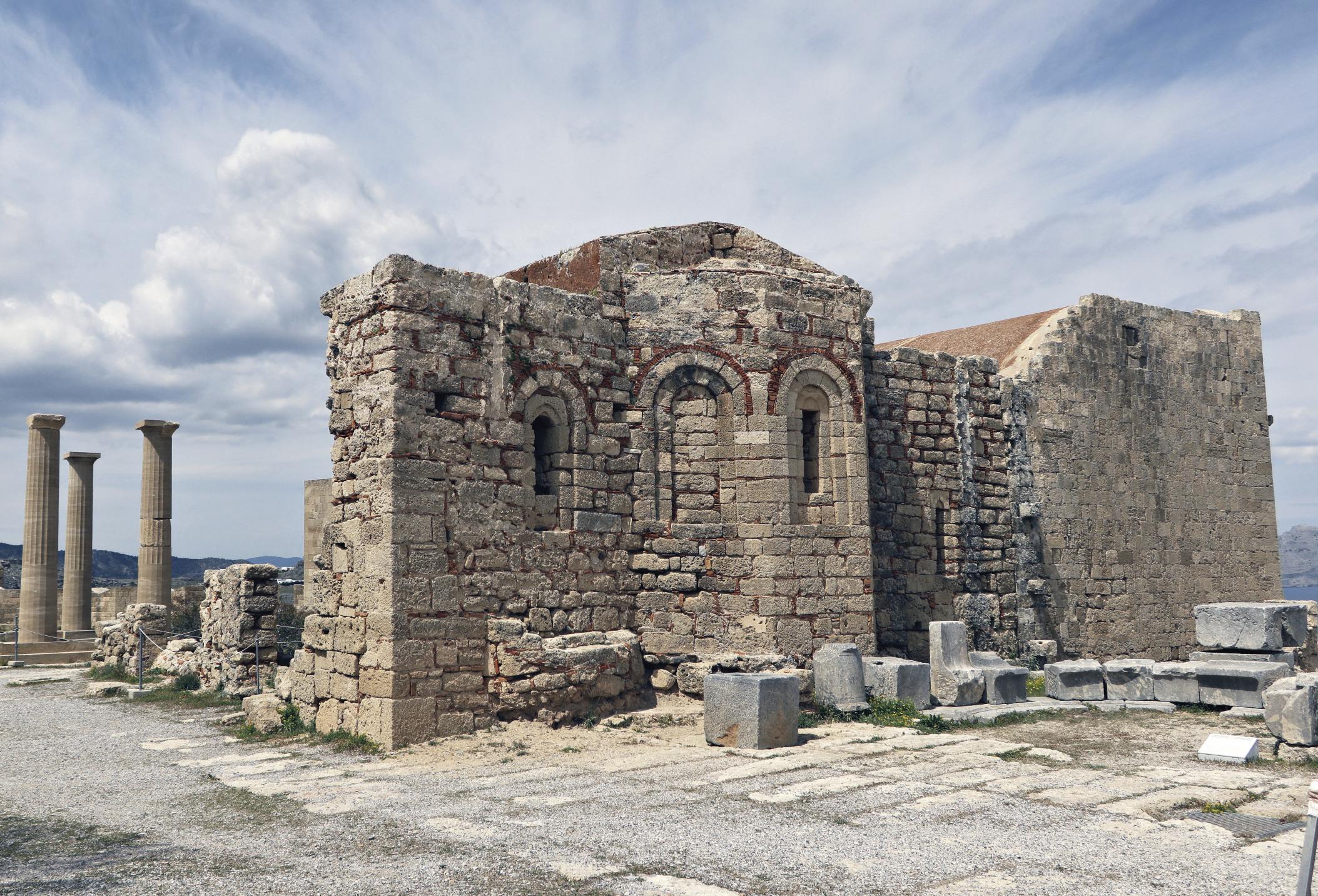 Püha Johannese kiriku varemed Lindose akropolis. Kirik ehitati 13.–14. sajandil tõenäoliselt seal juba 6. sajandil olnud varakristliku basiilika vundamendile. Foto: Aivar Kriiska