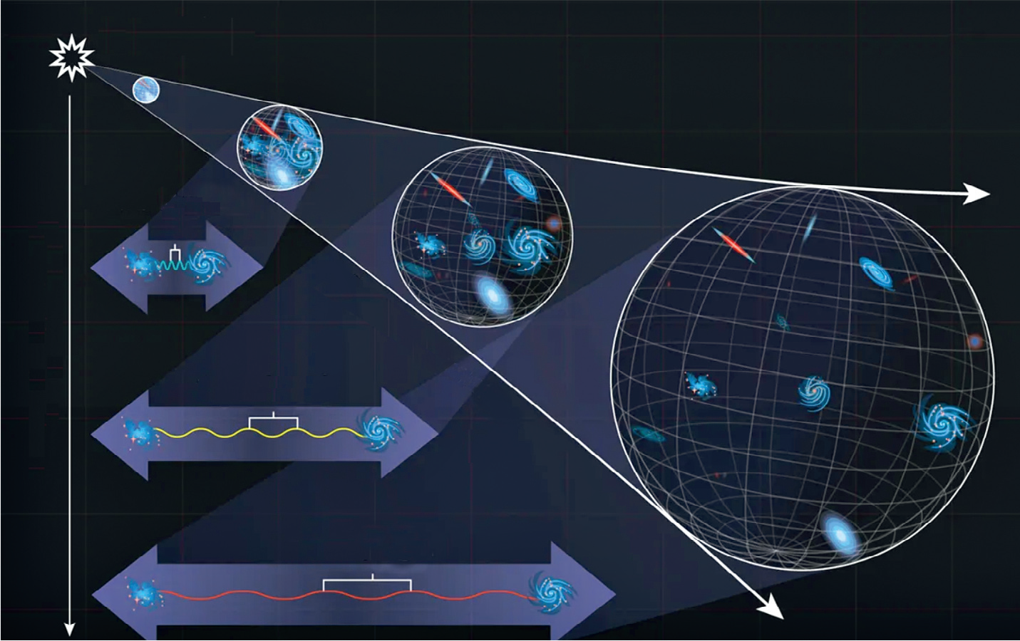 Mida kaugemale me vaatame, seda kaugemast minevikust tulnud valgust näeme. Nii saab vaadata ajas tagasi ja mõõta mitte ainult praegust universumi paisumist, vaid ka selle ajalugu. Ruumi paisudes venib valguslaine välja ja tema lainepikkus nihkub spektris punase värvuse poole. Kauge galaktika valguse punanihke järgi määratakse, kas universum paisus minevikus kiiremini või aeglasemalt – kas tumeenergia on praegu tugevam või nõrgem, kui oli varajases universumis. Selle järgi võivad teadlased ära arvata, mis laadi tumeenergiaga on tegemist.