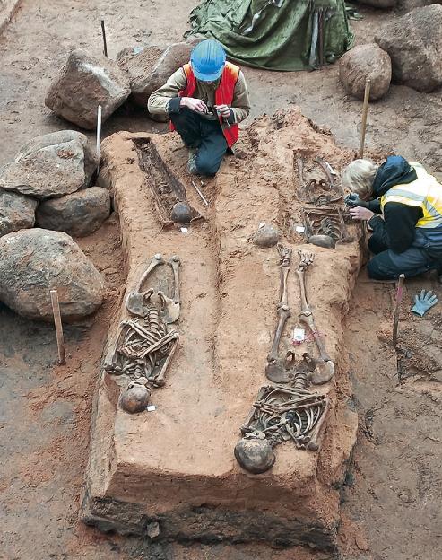 Tõenäoliselt 17. sajandi algusest pärinevate matuste väljapuhastamine keskaegse Nikolai kiriku varemetes. Foto: Martin Malve