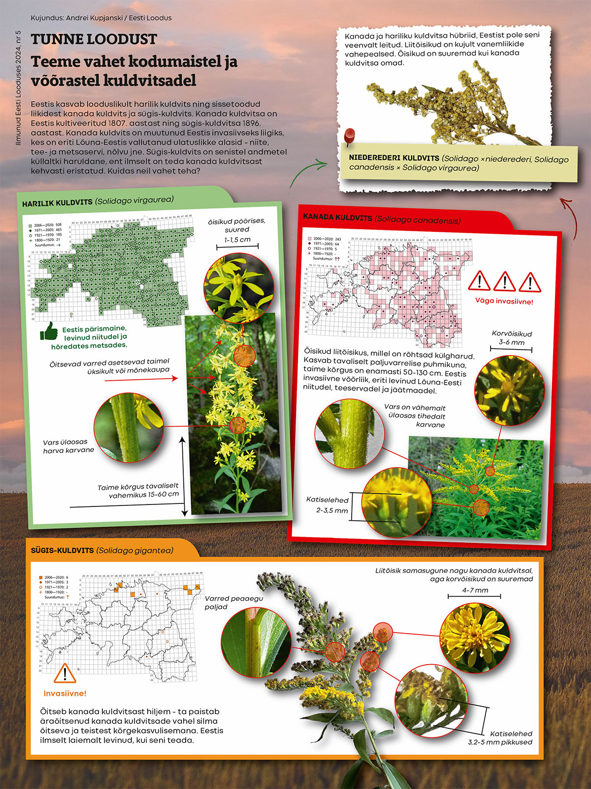 Teeme vahet kodumaistel ja võõrastel kuldvitsadel Eesti Loodus Kuupäev: 21/09/2024 SildidInfograafika Teostus: Andrei Kupjanski / Loodusajakiri Jagan artiklit FacebookTwitterWhatsAppLinkedin Liitu uudiskirjaga - Saadame sulle uudiseid Loodusajakirja värskete väljaannete ja muude olulisemate teemade kohta LiitunOlen tutvunud MTÜ Loodusajakirja isikuandmete töötluse põhimõtetega. Viimased artiklid Eesti Loodus EESTI LOODUSE ARHIIVIST | Taimetundmine võib alguse saada ka vanaema ravanduserohust Eesti Loodus EESTI LOODUSE ARHIIVIST | Aino Kalda: botaanika on huvitav teadus igal ajastul Eesti Loodus KUULA! | Eesti Looduse vestlusõhtud: 19. novembril on külas Maris Hindrikson Eesti Loodus SADA RIDA EESTI LOODUSEST | ÖKOLOOGILINE KIRJAOSKUS Tellijale PÕLLULT JA AIAST | TSITRUSELISTE MAAILM: HAPU, MAGUS JA LÕHNAV Tellijale RAHVUSLOOM | Hundi populatsioonigeneetika Eesti-Vene piiritara ja jahisurve mõjul Fotovõistlus POSTER | Remo Savisaar AASTA SAAK Tellijale AASTA SEEN | Kuuse- ja männitõvestaja juurepess EelmineSoe, susi, sutt: see tähendab Mulgimaal huntiJärgmineMETSAST JA PÕLLULT | Kaalikas, unustusse vajunud juurikas Artiklid tellijatele Tellijale PÕLLULT JA AIAST | TSITRUSELISTE MAAILM: HAPU, MAGUS JA LÕHNAV Tekst:TRIIN NÕU Fotod: WIKIMEDIA COMMONS Tsitruselised on ühed maailma... Tellijale RAHVUSLOOM | Hundi populatsioonigeneetika Eesti-Vene piiritara ja jahisurve mõjul Tekst: KRISTIINA AMUR, EGLE TAMMELEHT, KIRKE RAIDMETS, MARIS HINDRIKSON Hundi... Tellijale AASTA SEEN | Kuuse- ja männitõvestaja juurepess Tekst: TIIA DRENKHAN-MAATEN, KARIN KÜTT, REIN DRENKHAN Tänavuse aasta seene... Tellijale EESTI RAAMAT 500 | Eestikeelsetest linnumäärajatest Tekst: EERIK LEIBAK Eestikeelse raamatu viiesaja-aastases ajaloos leiab maakeelseid linnumäärajaid...